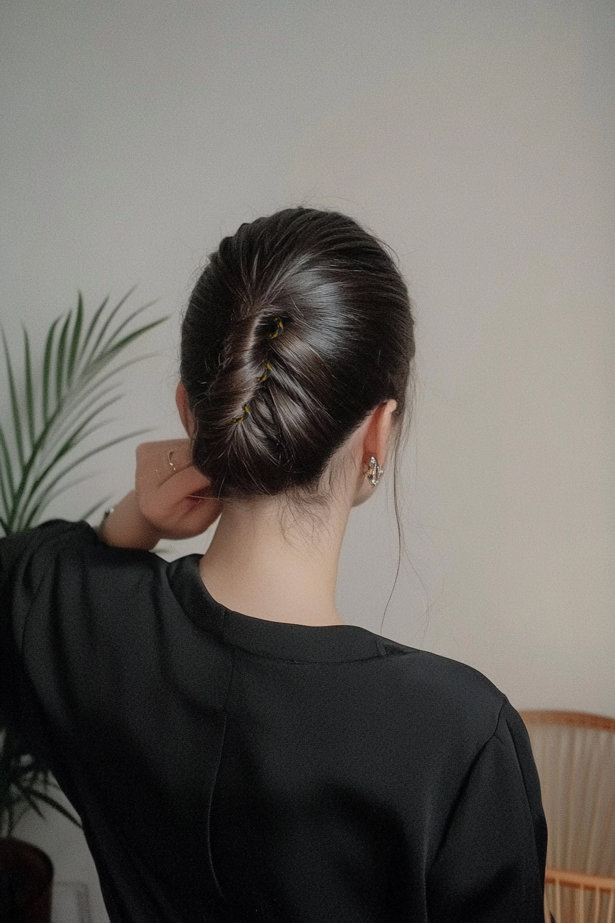 Twist: Lightly twist these sections where they meet at the back of the head.